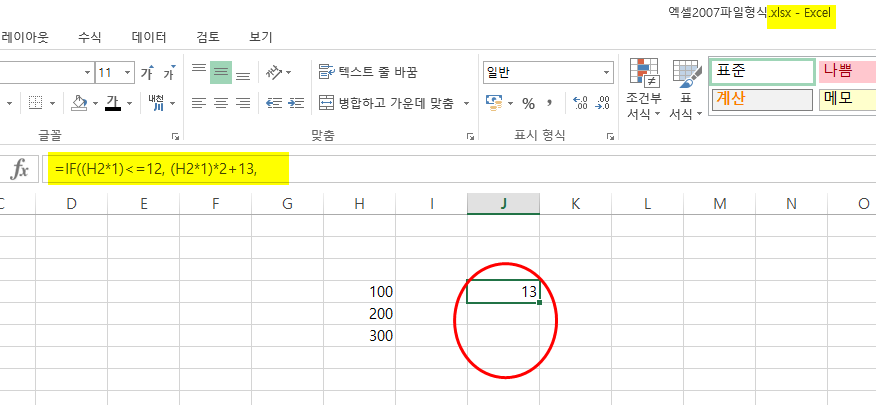 이렇게 수식 결과도 나오고, 상단의 표시도 [호환 모드]는 없고 정상적으로 .XLSX 파일명만 나온다.