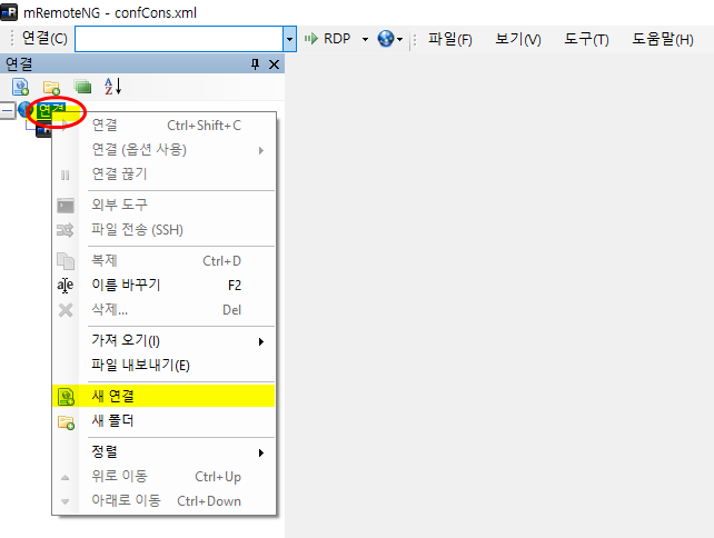 [새폴더]의 경우도 마찬가지로 폴더별로 구분이 필요할 때, 폴더 및 [새연결]을 추가해서 접속정보를 관리하면 될 것이다.
