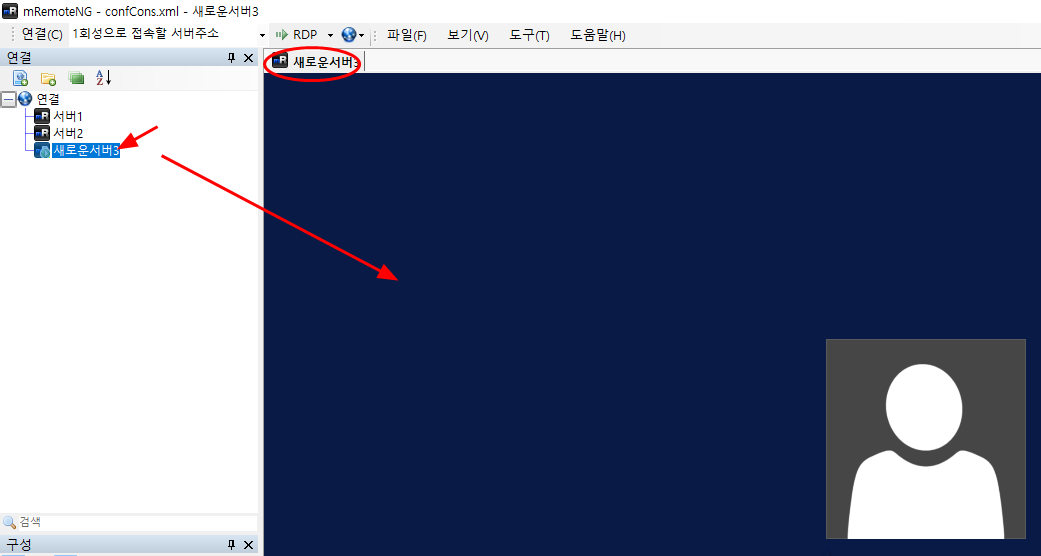 [새연결] -> [새로운서버3]로 변경을 하였다.
