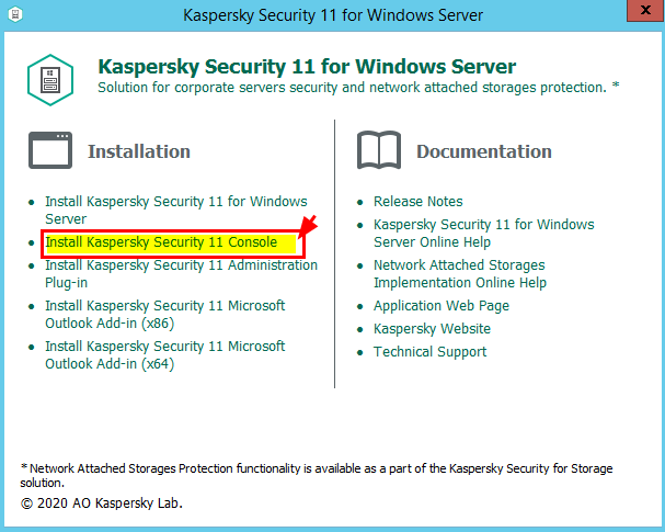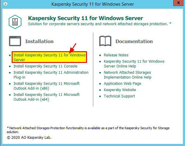 [Install Kaspersky Security 11 for Windows Server]를 클릭해서 설치 진행하자.