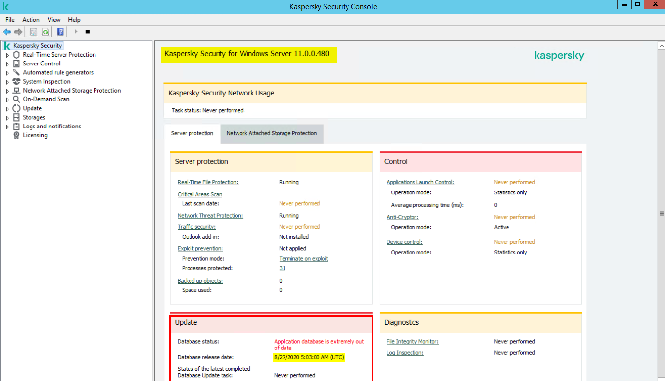 여러가지 제품군들도 있지만, 카스퍼스키 시큐리티 10.X for windows server 나 11.x for windows server 찾기는 참 힘들다.
