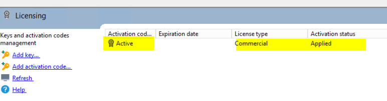 29. 그러면 Licensing 메뉴에서 라이선스 활성화 상태가 된다.