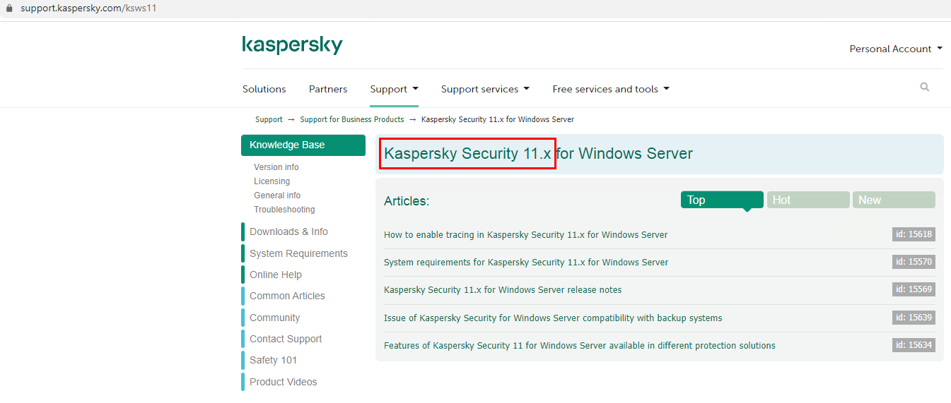 1) Kaspersky Security 11.x for Windows Server 다운 받기