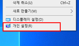 1. 바탕화면에서 [오른쪽 마우스 클릭] -> [개인설정] 클릭