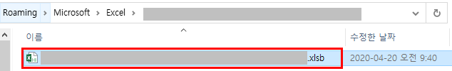 파일명 확장자자 .xlsb 형태로 해당 파일을 열어보면 열리기도 한다.