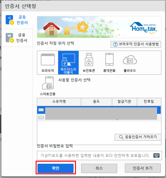 2. 회원 또는 비회원 로그인이 가능한데, 간략히 비회원 방식으로 공동인증서를 사용하여 로그인을 해 보았다.