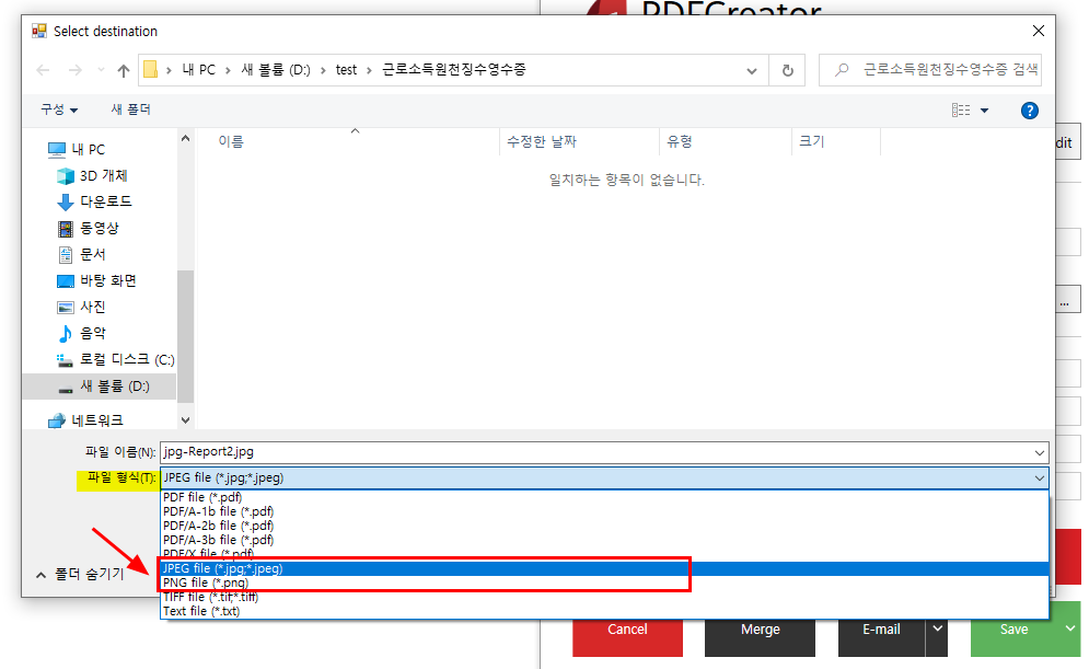 10. 만약 JPG나 PNG의 근로소득 원천징수영수증이 이미지 파일로 저장을 하려면 PDFCreator 프로그램을 설치후 아래처럼 하면 된다.