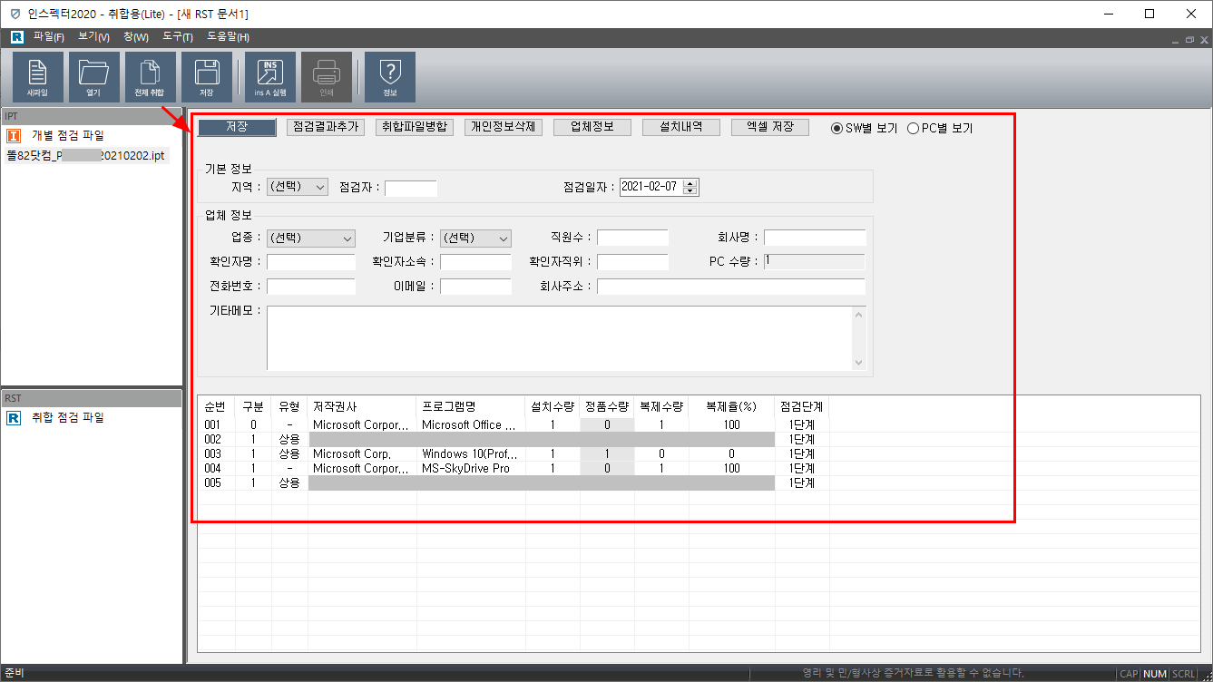 SW취합용은 말 그대로 SW점검용으로 개별 사용자 데이터를 모아서 집계를 해 주는 프로그램이라고 보면 되겠다.