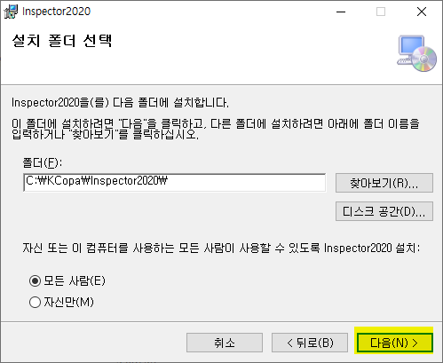 1. Inspector2020 설치 마법사를 시작한다. [다음]