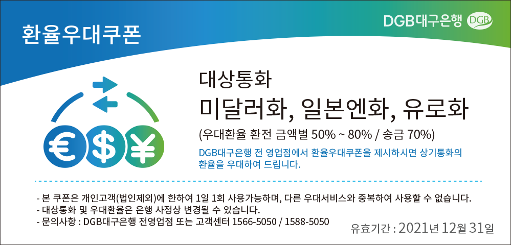 [ 2021년 12월 31일 DGB대구은행 환율우대쿠폰 다운받기 ]