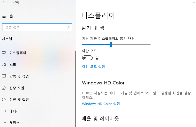 아니면 검색에서 디스플레이 입력을 해서 나오는 항목을 아무거나 선택을 해도 될 것이다. 모르며 설정 검색에 대충 입력하면 친절하게 나온다.