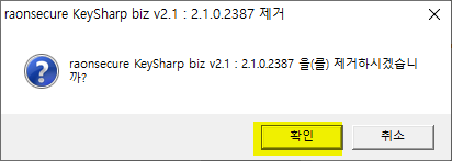 5. 제거를 하면 한번 더 묻는데 [확인]을 해 주면 key# biz가 삭제가 된다.