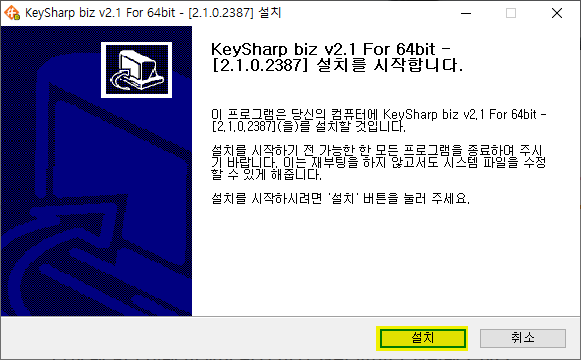 1. key# biz 설치파일을 다운로드 받아 [설치] 클릭