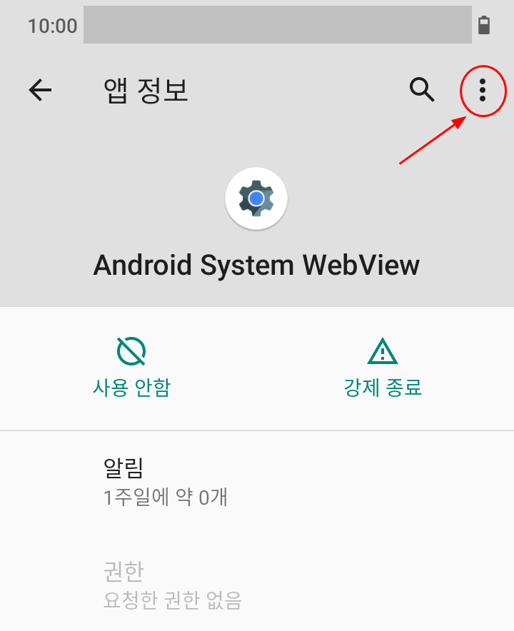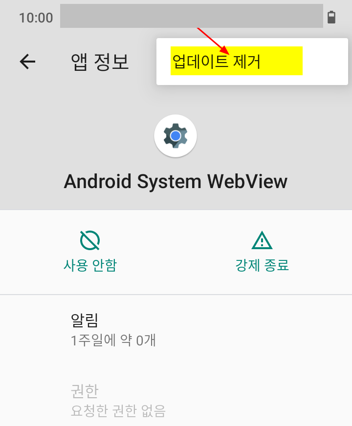 5. Android System WebView 이 앱을 초기 버전으로 바꾸시겠습니까? 모든 데이터가 삭제됩니다.