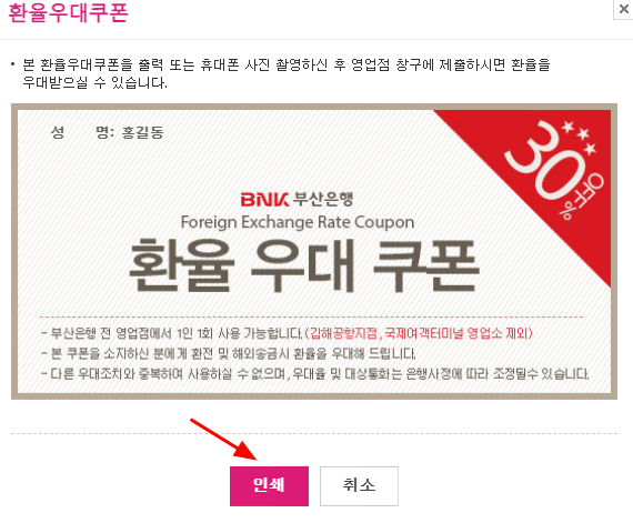 - 본 쿠폰을 소지하신 분에게 환전 및 해외송금시 환율을 우대해 드립니다.