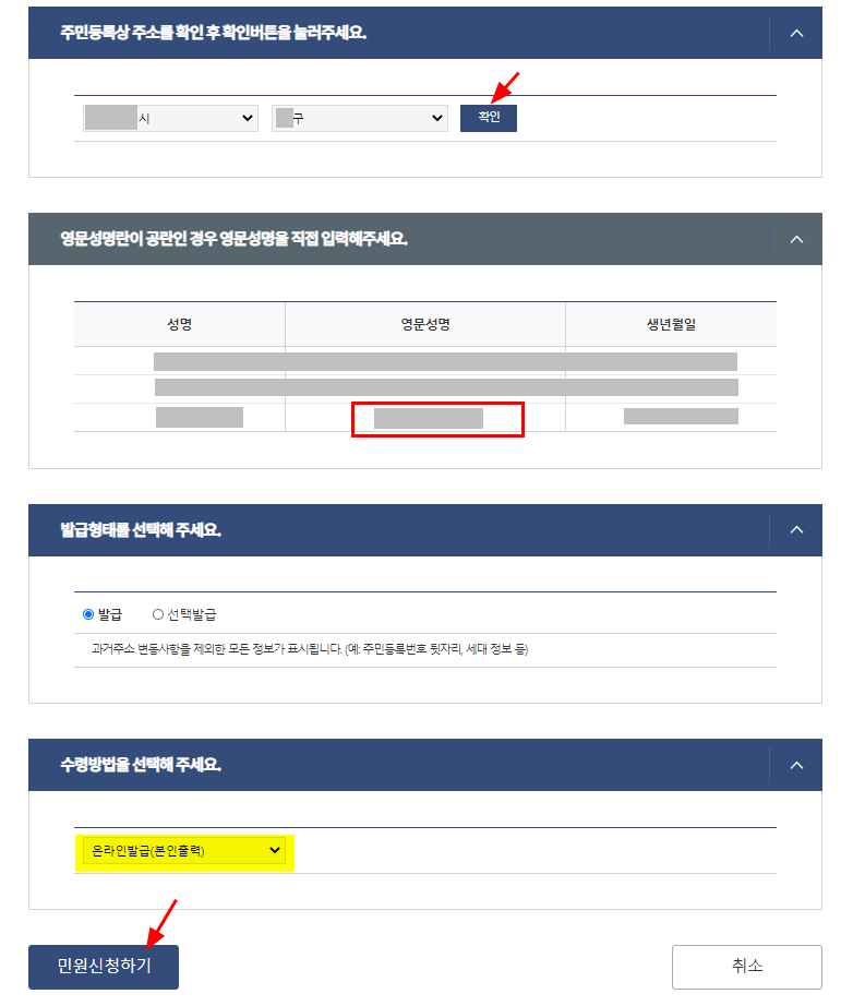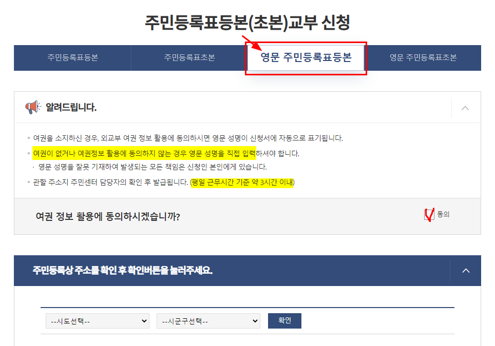 어쨋든 영문 주민등록등본 발급을 하여보자.