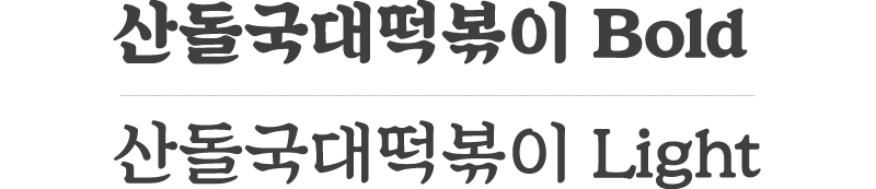 국대떡볶이체는 Bold, Light 두 가지 형태입니다.