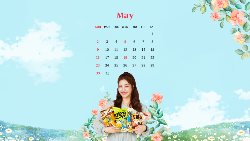 5월을 맞이하여 오리온에서 브레이브걸스 유정의 배경화면을 배포 중이다.