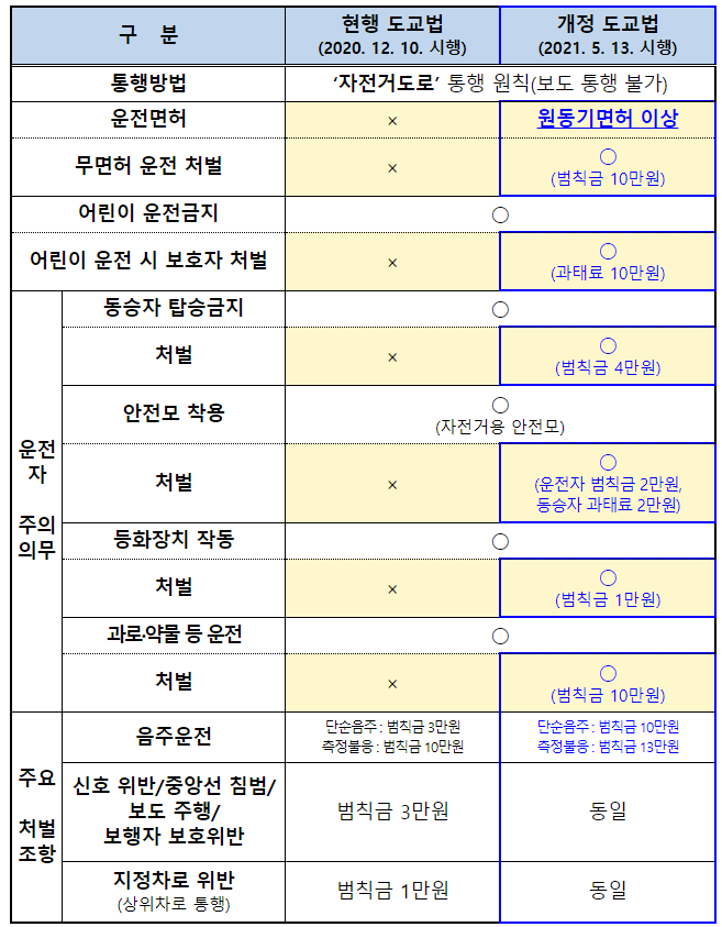 - 5월 13일 (목) 부터 개인형 이동장치 관련 강화된 도로교통법 시행