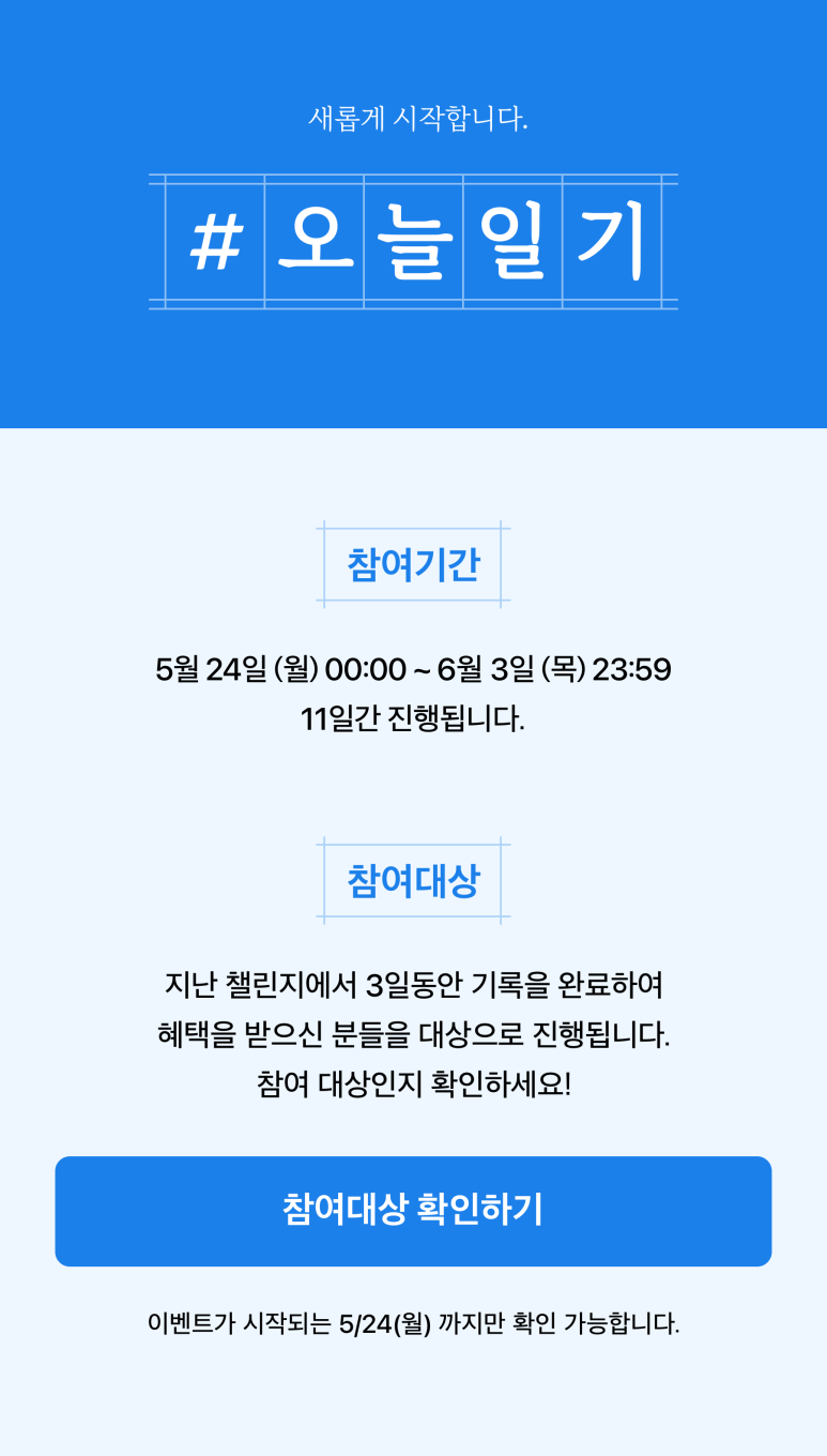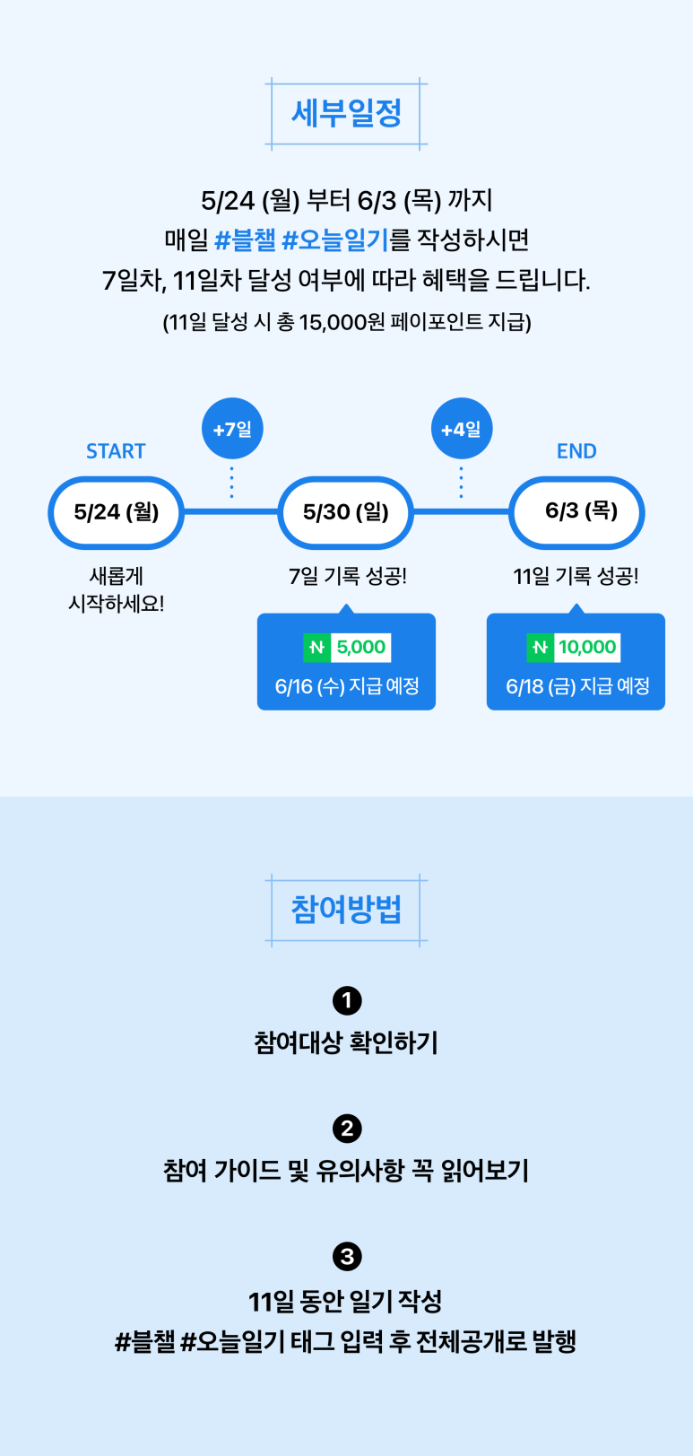 네이버 오늘일기 챌린지가 5월 24일부터 6월 3일까지, 총 11일간 진행되며,