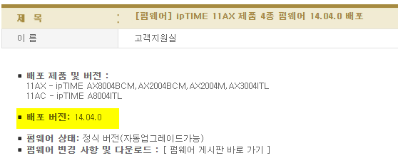 비단 아이피타임 11AX 뿐만 아니라 다른 모델들도 최신 버전의 펌웨어들이 계속 발표되기에 확인을 해 보자.