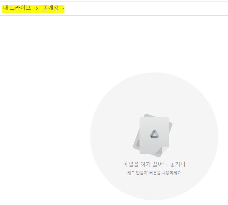 7. 해당 폴더를 들어가 보면, 이런 식으로 '파일을 여기 끌어다 놓거나 새로만들기 버튼을 사용하세요' 라고 글이 보일 것이다.