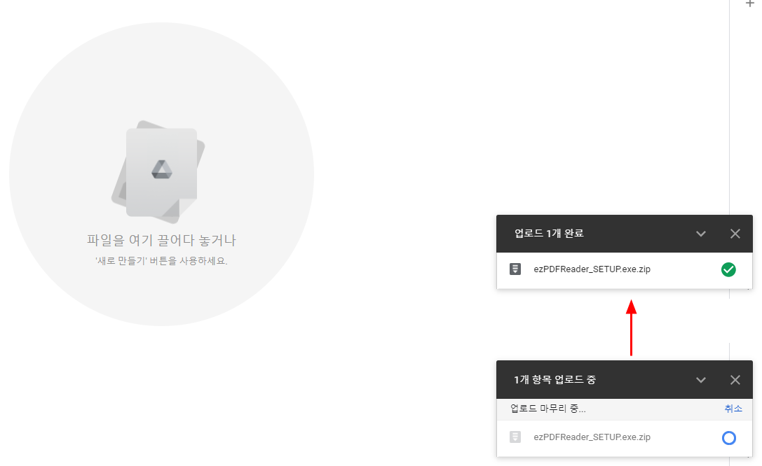 파일이 다 업로드 되면 업로드 완료라고도 나온다.