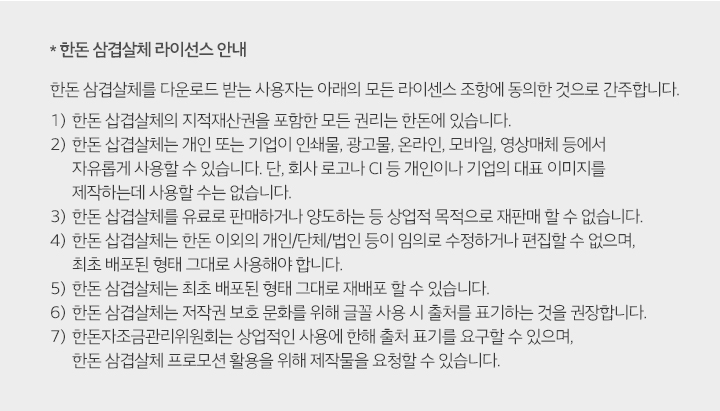 폰트는 한돈닷컴(www.han-don.com)에서 회원가입 후 무료로 다운로드 받아 사용할 수 있다.