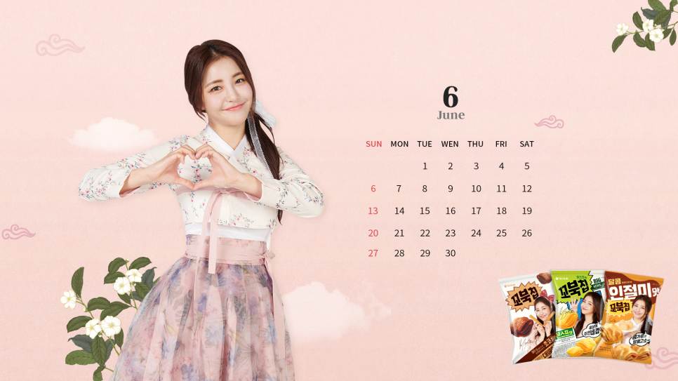 오리온에서 호국보훈의 달인 6월에도 사랑스러운 꼬북좌, 브레이브걸스 유정의 배경화면을 공개하였다.