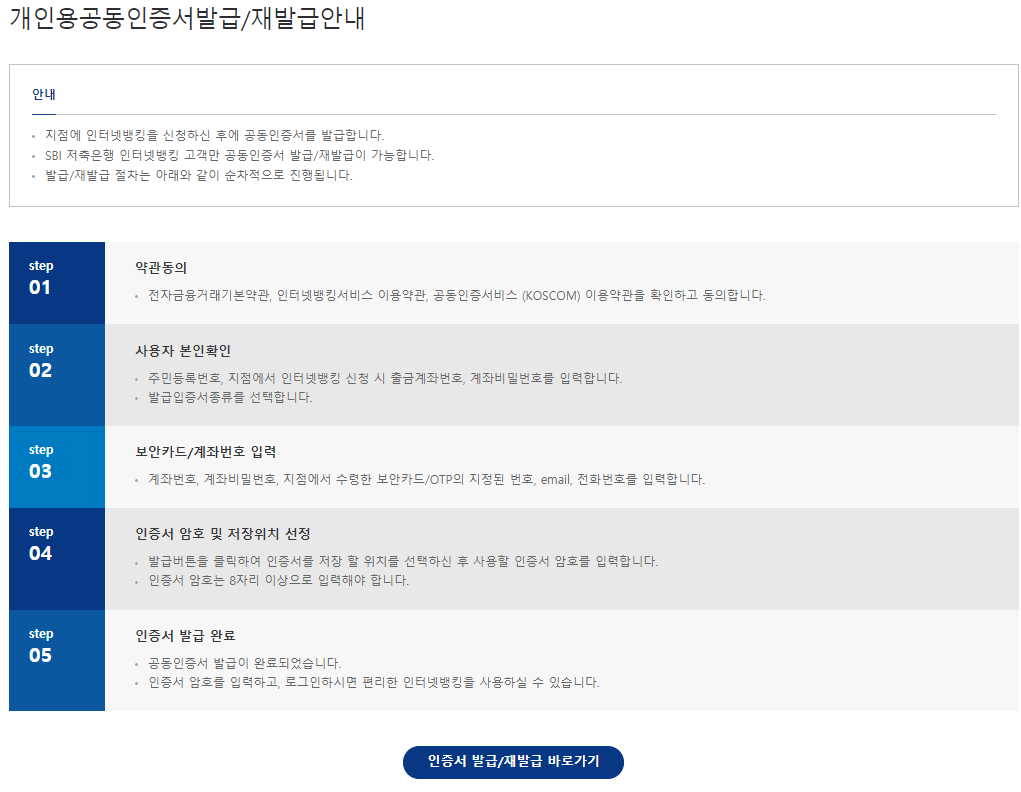 SBI저축은행의 인증센터 페이지를 보면 아래와 같이 설명이 되어 있다.