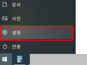 1. 왼쪽 하단의 [윈도우] 클릭 -> [설정 톱니모양] 클릭
