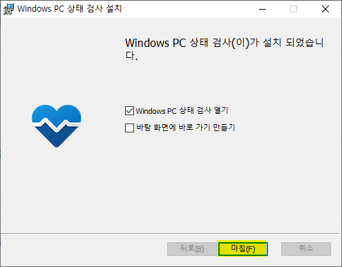 4. [마침]을 누르면 윈도우PC 상태 검사 프로그램이 실행된다.