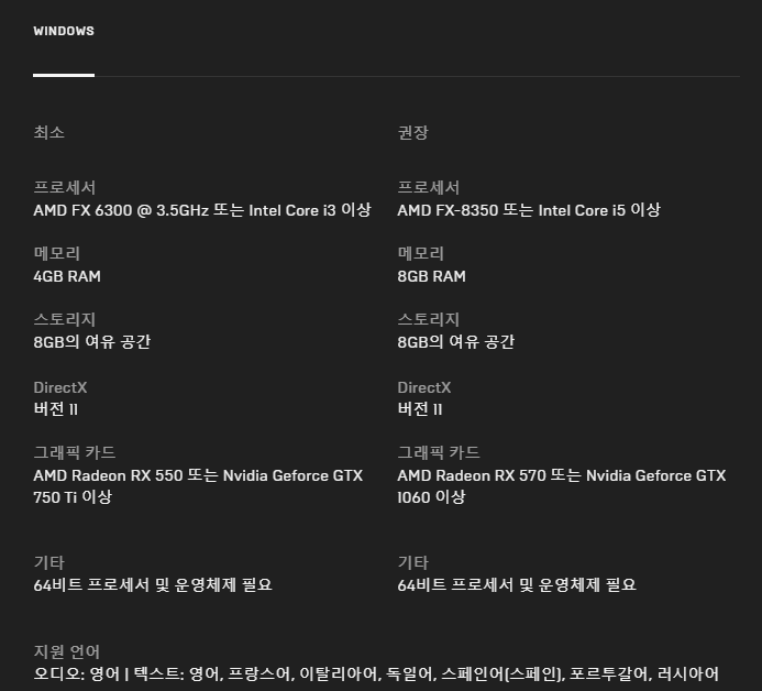 시스템 사양도 그렇게 고사양은 아니기야 큰 부담은 없어 보인다.