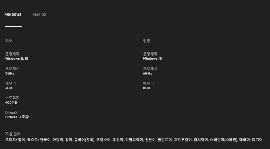 < 컴퓨터 사양 - 한국어도 지원을 한다 >