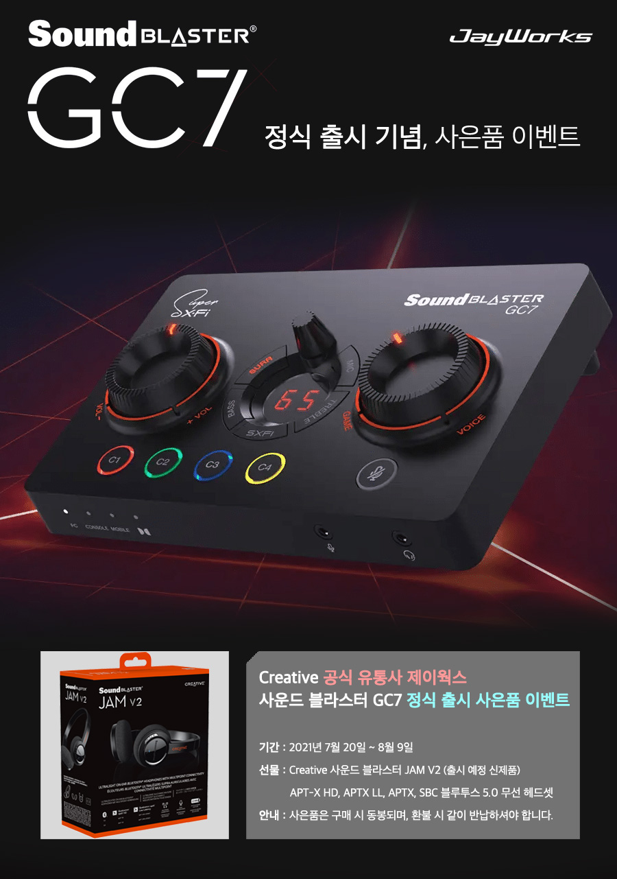 제이웍스, Creative 사운드 블라스터 GC7 정식 출시 이벤트 중이다.
