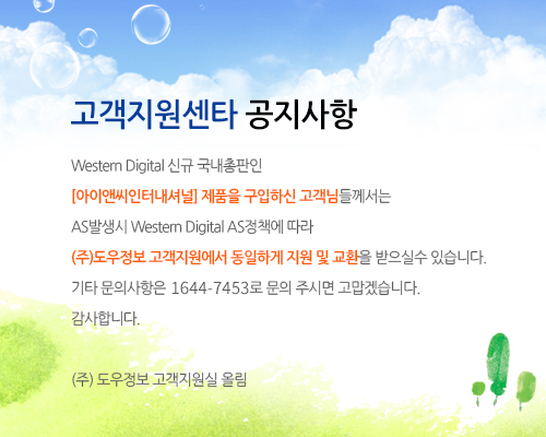 만약 아이앤씨인터내셔널 제품군으로 총판/유통사 스티커가 붙은 웨스턴디지털 제품은 도우정보로 문의를 하자.