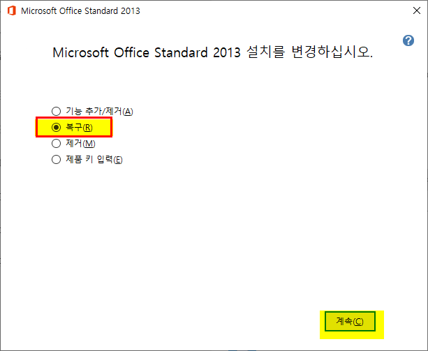 4. MS 오피스 2013 [복구]를 선택한다.