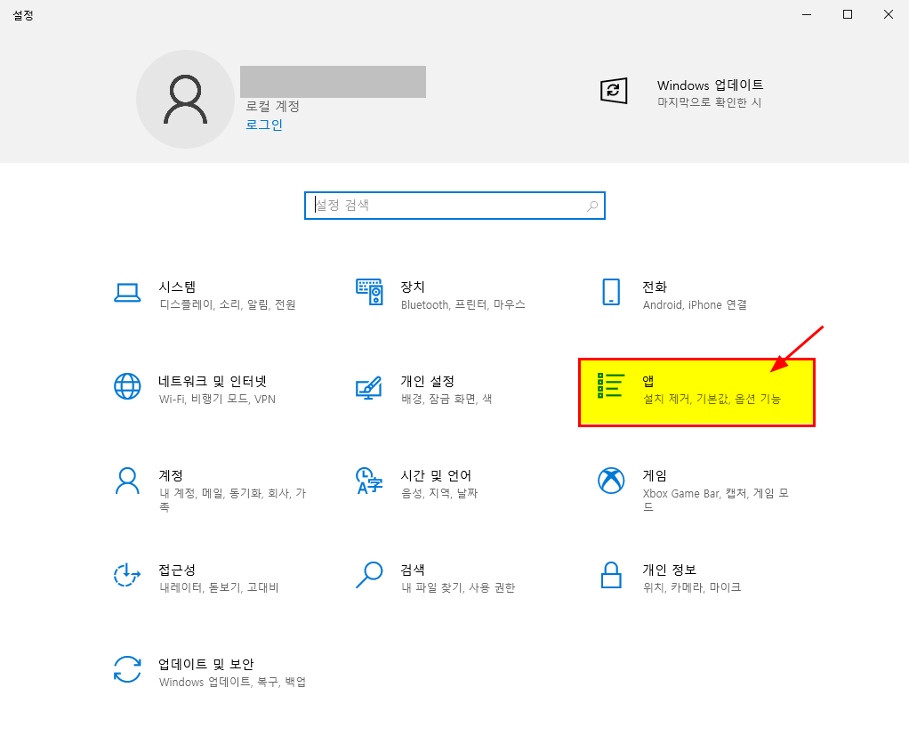 1. 윈도우 >> [설정] 메뉴로 들어간다.