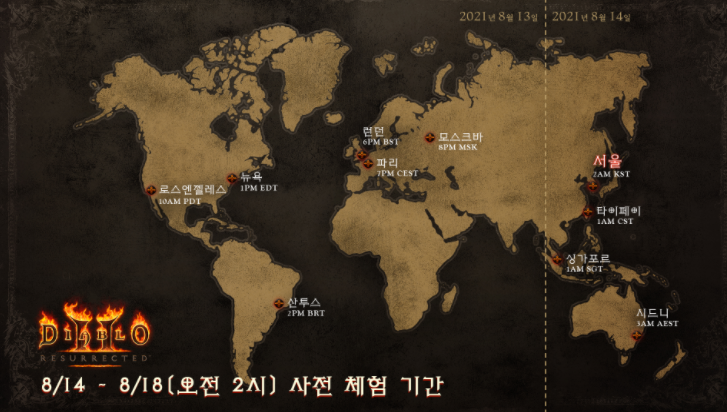 디아블로2 레저렉션이 8월 14일 오전2시 ~ 8월 21일 오전2시까지 베타 테스트에 들어간다.