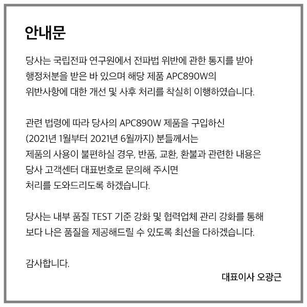 APC890W 는 2021년 1월 ~ 2021년 6월까지 구매한 것에 해당되는 듯 하다.