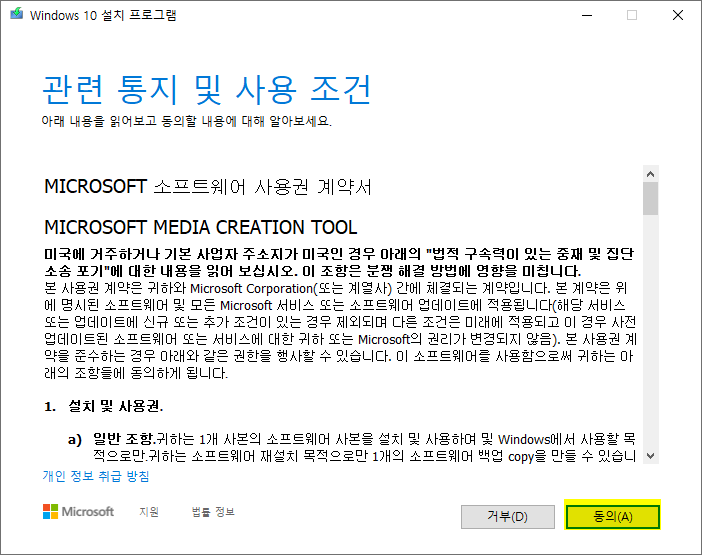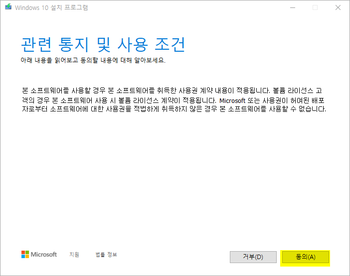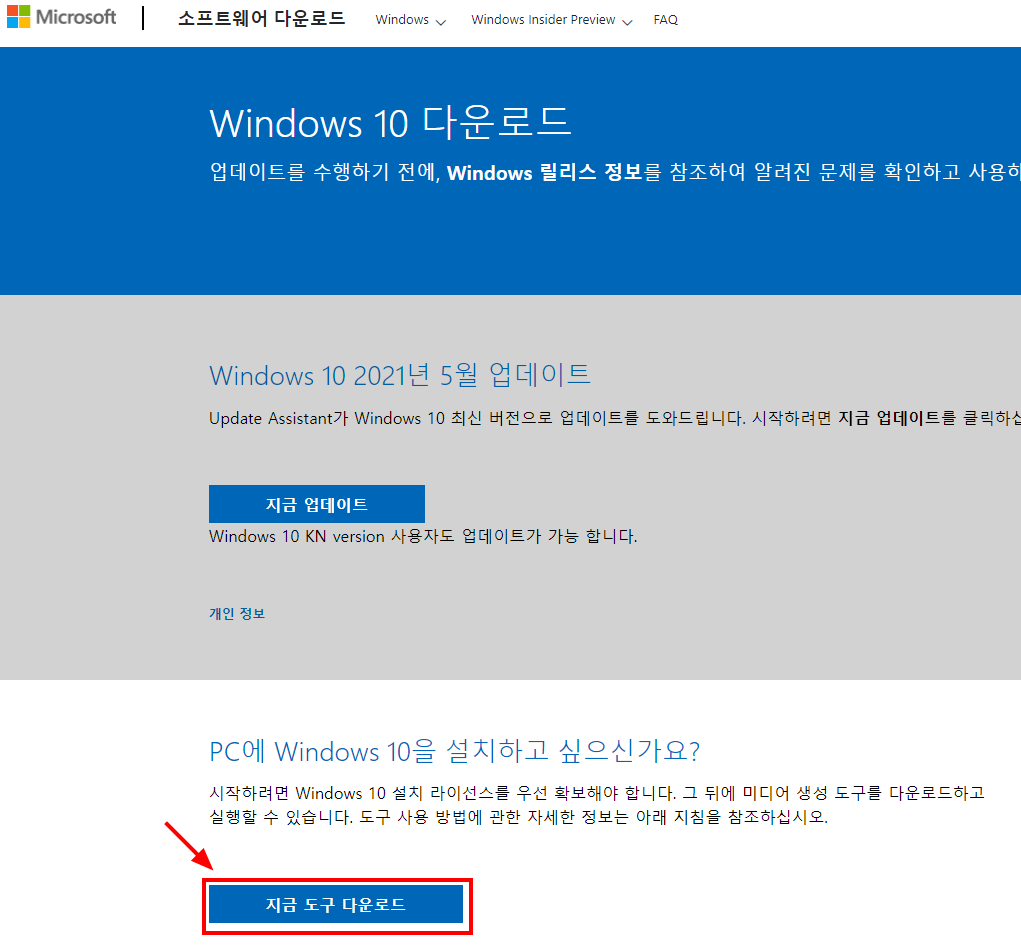 두번째로 윈도우10 업데이트를 빠르게 하는 방법은 윈도우 설치 도구를 이용하는 방법이다.