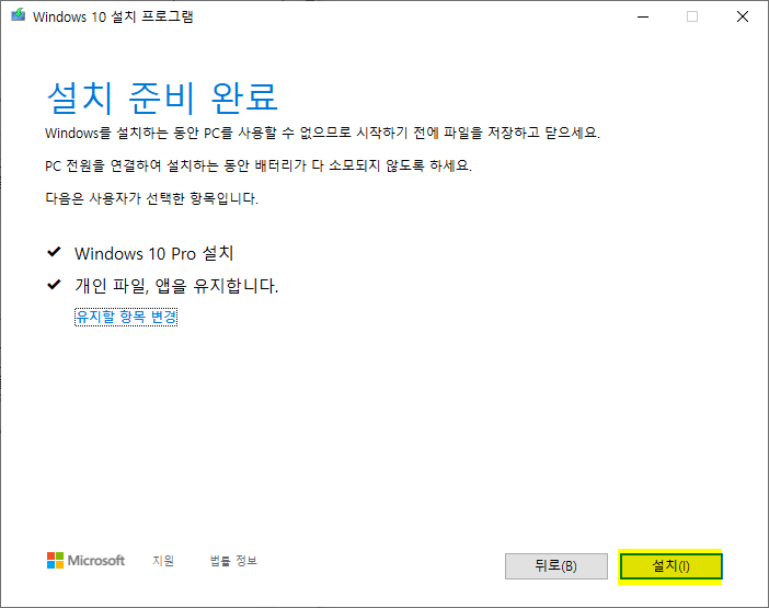 2. 윈도우10 설치프로그램을 이용해서 윈도우10 업데이트도 가능하였다.