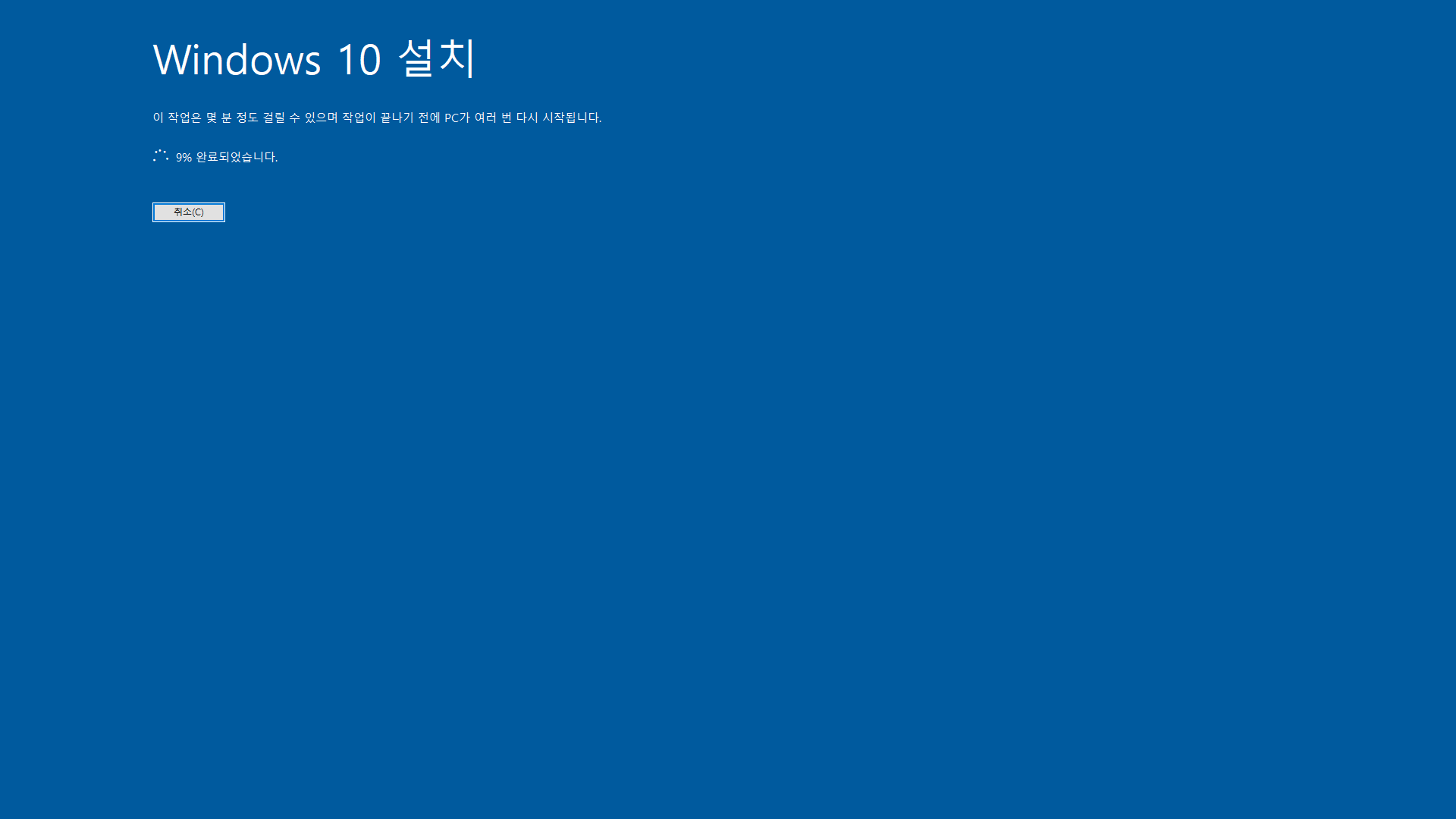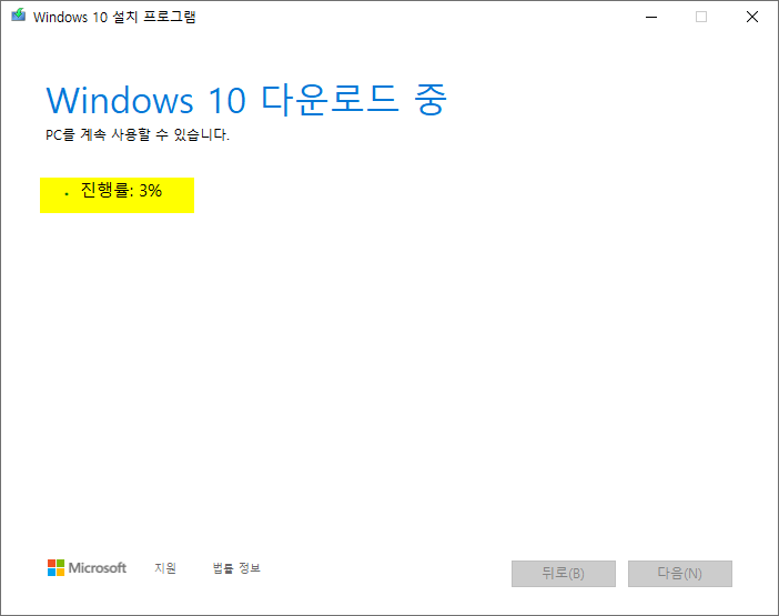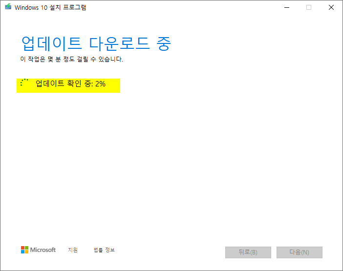 4. 윈도우10 업데이트 부분을 다운로드 하는 것 같다. 여기까지는 별로 시간이 많이 걸리지 않는다.