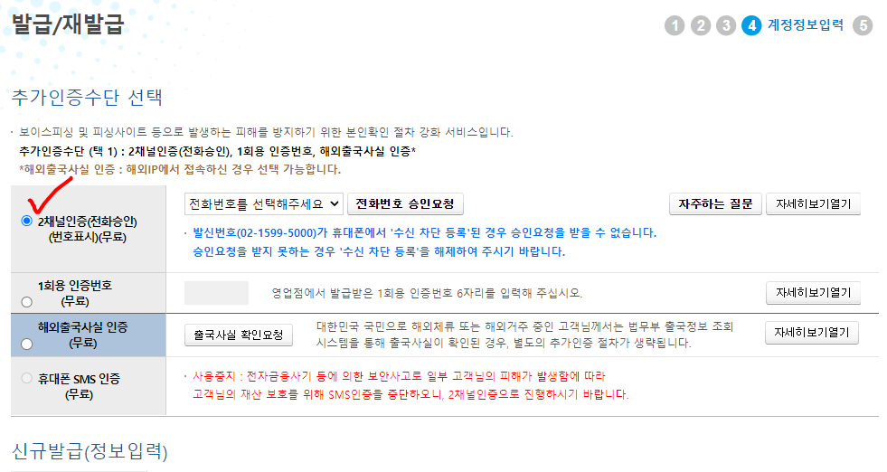 5. 추가인증수단을 진행해 주시고...