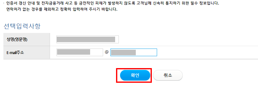 6. 선택적으로 영문 성명과 이메일 주소도 적어주면 무슨 정보를 주지 않을까 해서 입력해 주었다.