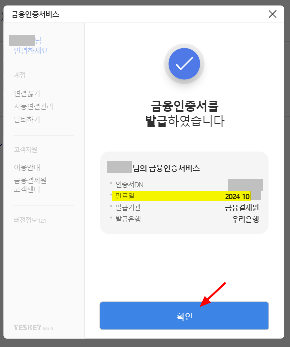 12. 비밀번호를 2회 입력하면 최종 금융인증서 발급 절차가 완료된다.