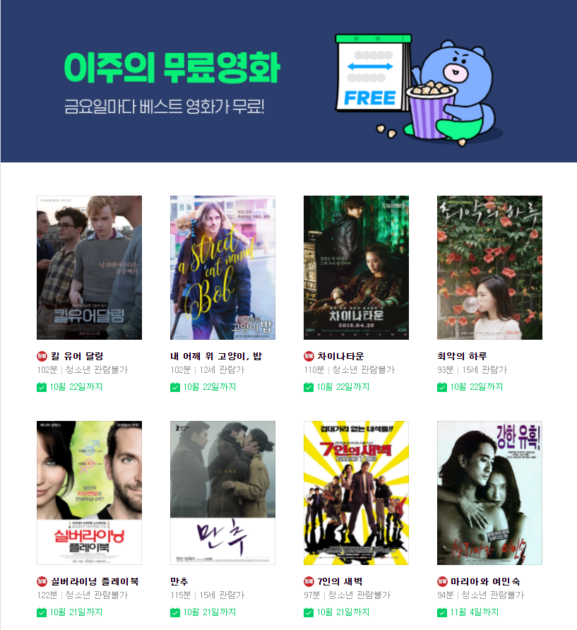 네이버 시리즈온에서는 계속해서 매주 금요일마다 무료영화를 다운 받을 수 있다.