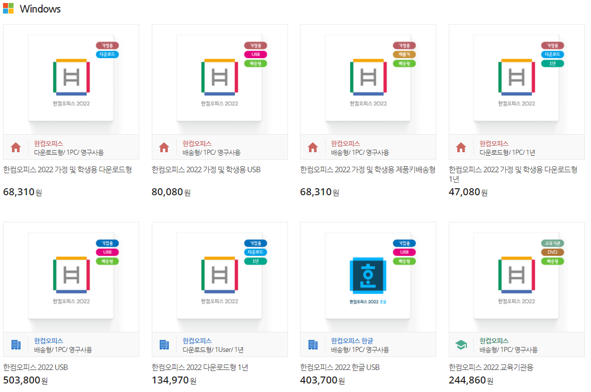 한컴오피스 2022를 구매하고자 하는 분들은 참고로 하자.