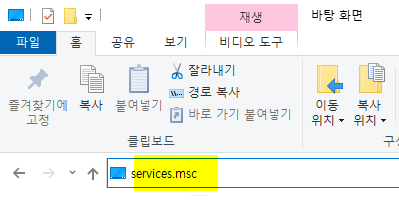 1. 아무 폴더를 열어서 services.msc 라고 입력하고 엔터를 친다.