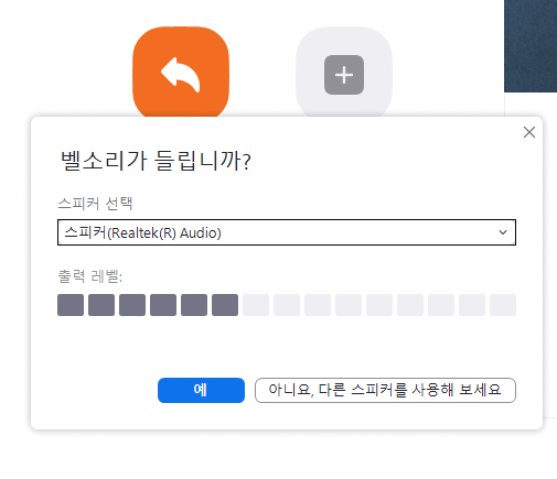 8. 새회의를 누르면 오디오 연결 창이 뜨는데, 제대로 스피커, 마우스가 동작하는지 한번 점검을 해 보자.